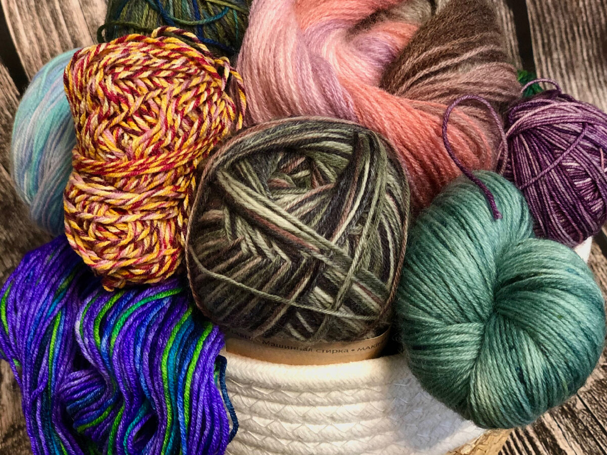 Если несколько мотков пряжи сначала окрасить, а затем скрутить в одну нить, получится меланж.