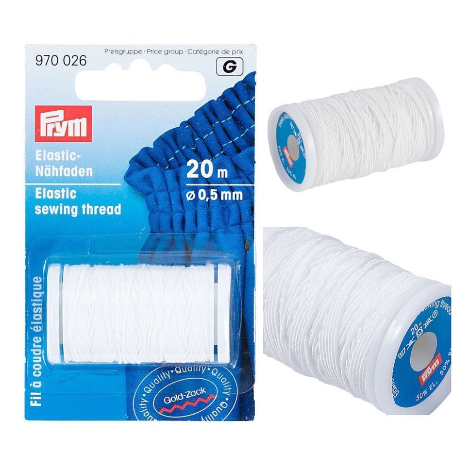 970026 Эластичная нить для шитья, 0,5 мм белый цв. Prym