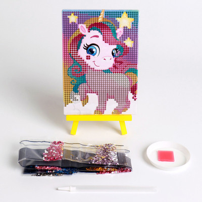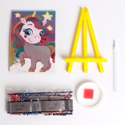 Алмазная мозаика для детей «Весёлый единорог» + ёмкость, стержень с клеевой подушечкой