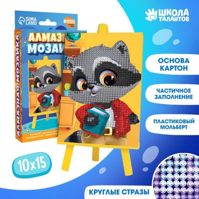 Алмазная мозаика для детей «Енотик», 10х15 см. Набор для творчества