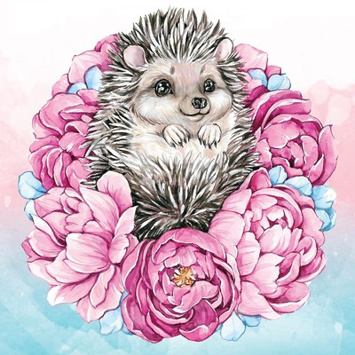 Алмазная мозаика «Ёжик в цветах» 30 × 30 см