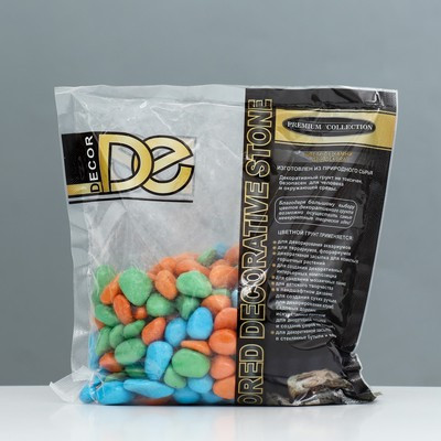 Грунт для аквариума "Галька цветная, оранжевый-салатовый-голубой" 800г фр 8-12 мм