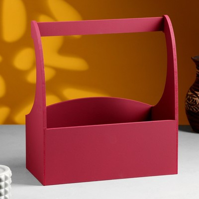Кашпо деревянное "Symmetric Heart, сердце", с ручкой, 25×12,5×10(28) см Бордо