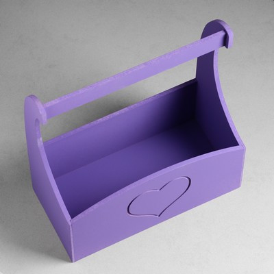 Кашпо деревянное "Symmetric Heart, сердце", с ручкой, 25×12,5×10(28) см Фиолетовый
