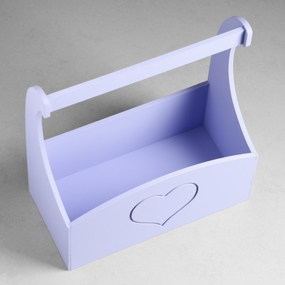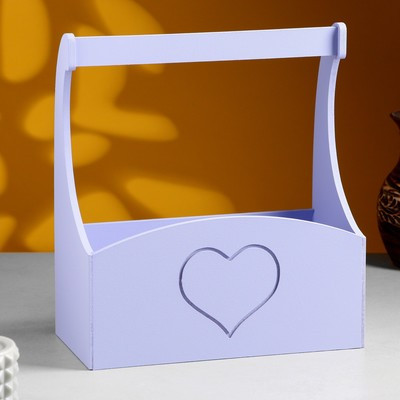 Кашпо деревянное "Symmetric Heart, сердце", с ручкой, 25×12,5×10(28) см Лавандовый