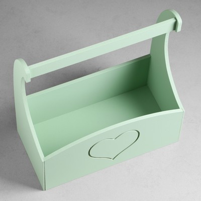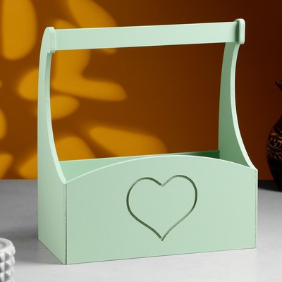 Кашпо деревянное "Symmetric Heart, сердце", с ручкой, 25×12,5×10(28) см Оливковый