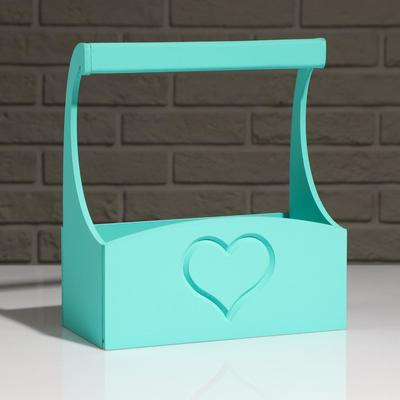 Кашпо деревянное "Symmetric Heart, сердце", с ручкой, 25×12,5×10(28) см