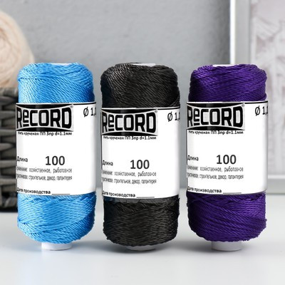 Нить крученая ПП 3пр d=1.1мм (100, син, фиол, черн, Ц4"набор)