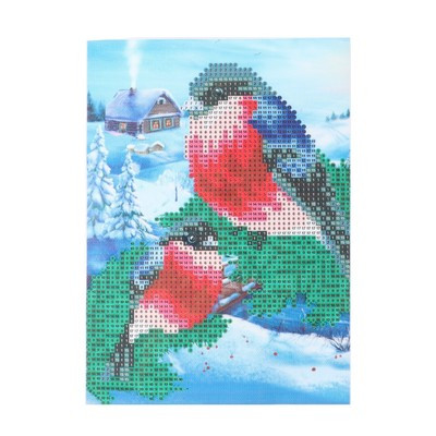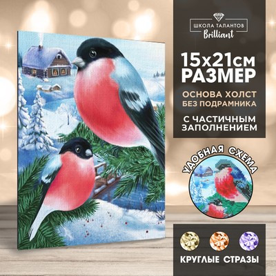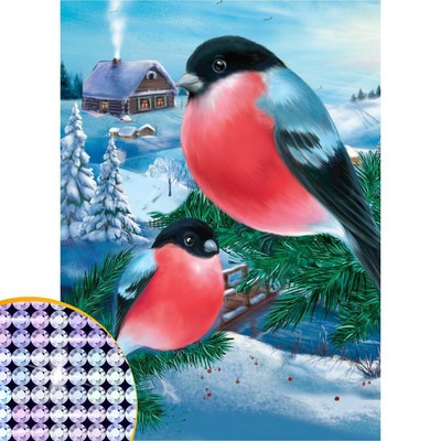 Новогодняя алмазная мозаика с частичным заполнением на холсте «Новый год. Снегири», 15 х 21 см