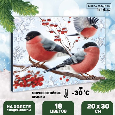Новогодняя картина по номерам на холсте с подрамником «Новый год! Снегири на ветке», 20 х 30 см