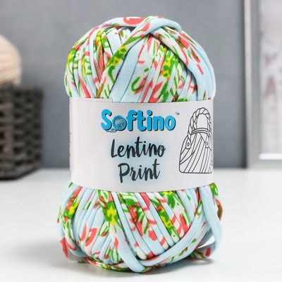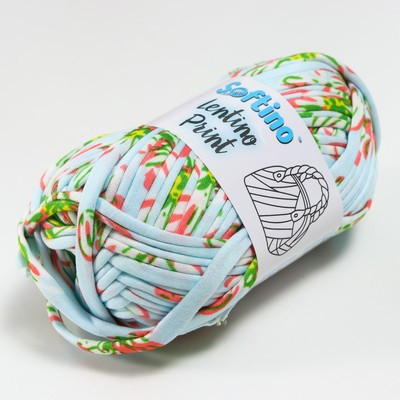 Пряжа трикотажная 95% хлопок, 5% эластан "Lentino Print" 100 гр 30 м розовый на голубом (2 шт.)