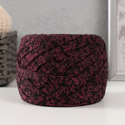 Шнур Риббон с люрексом 85м/170±5 гр (Черный, люрекс: Фуксия)
