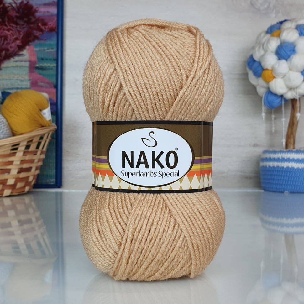 Бренд NAKO Длина нити 200 Состав 49% шерсть, 51% премиум акрил Принадлежит к коллекции Superlambs Special Nako Номер цвета 1670 Сезонность Весна;Осень;Зима Вес мотка, г 100 Количество в упаковке 5 Вес 500 г