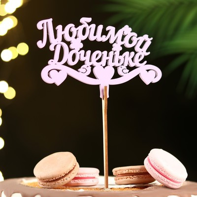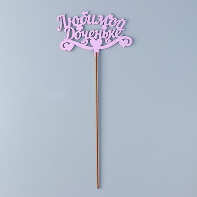Топпер деревянный "Любимой доченьке" сиреневый 13х8 см