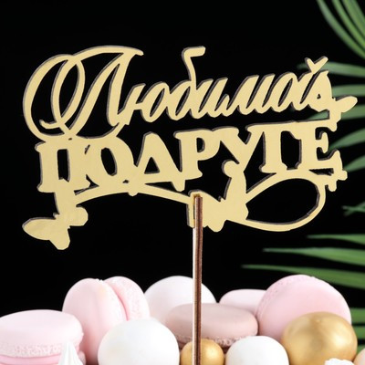 Топпер деревянный "Любимой подруге" золотой Дарим Красиво 14,3х8,4 см
