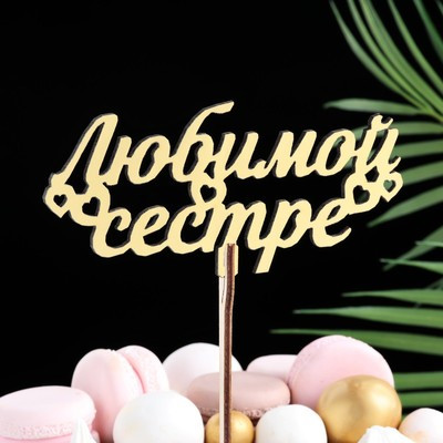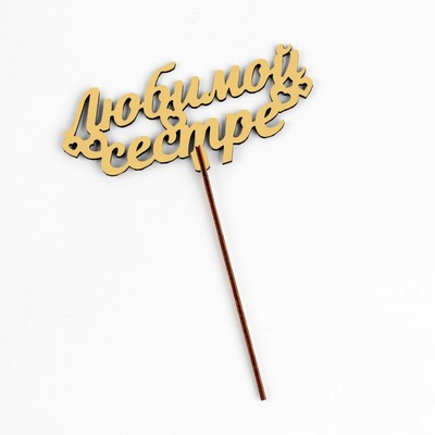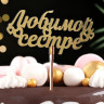 Топпер деревянный "Любимой сестре" золотой Дарим Красиво 14,3х6,7 см