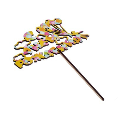 Топпер для торта деревянный «С Днём Рождения», с печатью, шарики (5 шт.)