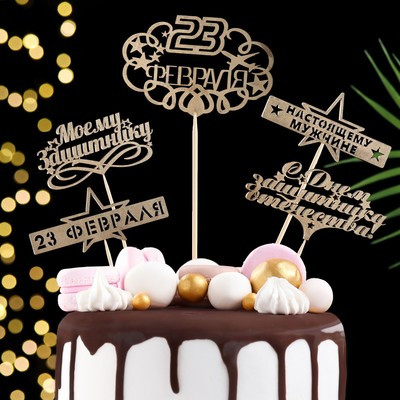 Топпер "Защитнику Отечества" на подвесе, МИКС, 5 шт в фасовке Дарим Красиво (5 шт.)