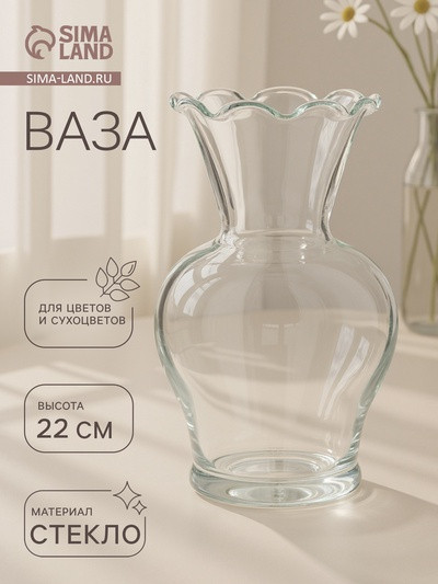 Ваза «Антерра», волнистый край, 1.6 л, 22×12.5 см, стекло, прозрачная станет незабываемым подарком, если поместить в неё конфеты или другие сладости. Дайте волю фантазии!